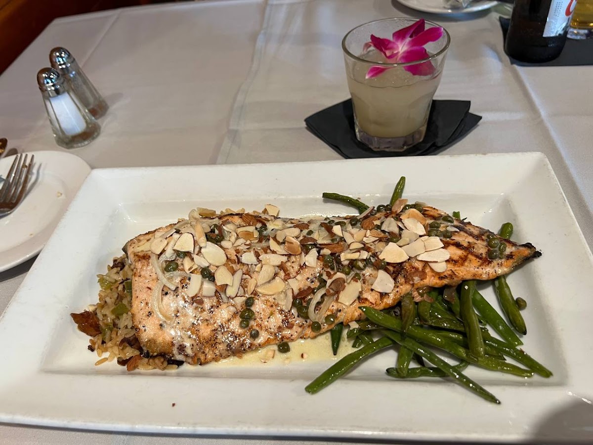 Delicious food from the moment you entered the restaurant, you get welcome super friendly ladies and the waitress was amazing. I had this salmon and it was just delicious. The drinks atmosphere waitress and service. It’s top notch. I will come back here again the best of my family. I love it all around excellent place and the food is tasty 100% recommend this to everyone.